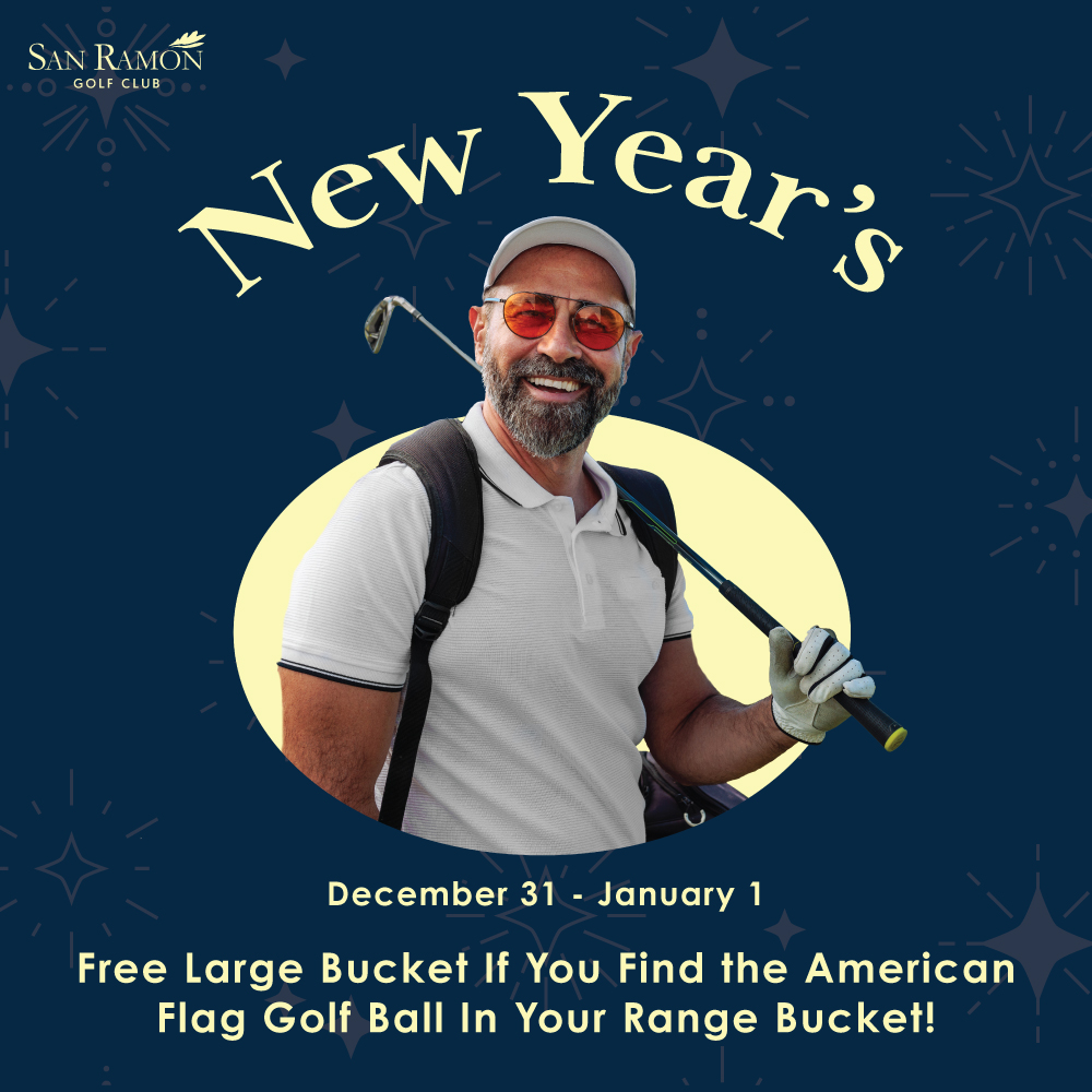 Free large range bucket voucher if you find the American flag golf ball in your range bucket!